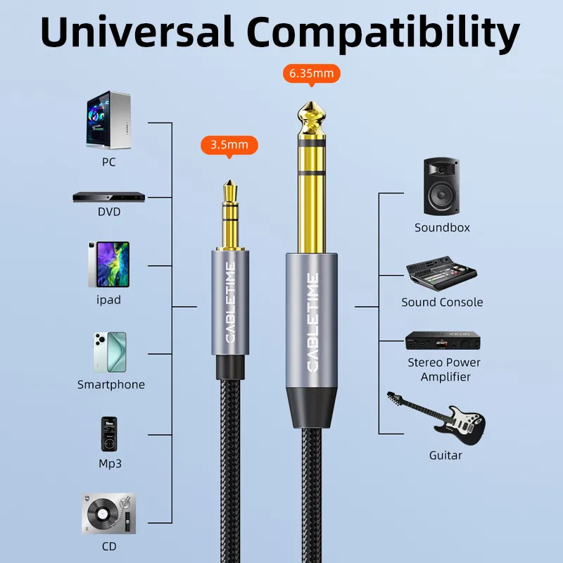 CABLETIME καλώδιο ήχου 3.5mm σε 6.35mm CT-AV321-H11G, 1m, μαύρο