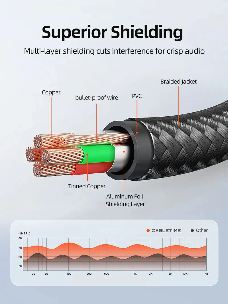 Τα καλώδια της Cabletime διακρίνονται για τον premium χαρακτήρα τους, καθώς ανήκουν στην high-end κατηγορία ποιότητας. Κατασκευάζονται σύμφωνα με τις υψηλότερες τεχνικές προδιαγραφές, προσφέροντας αξιόπιστη λειτουργία και αντοχή στον χρόνο.