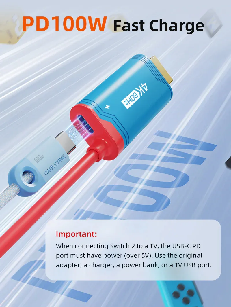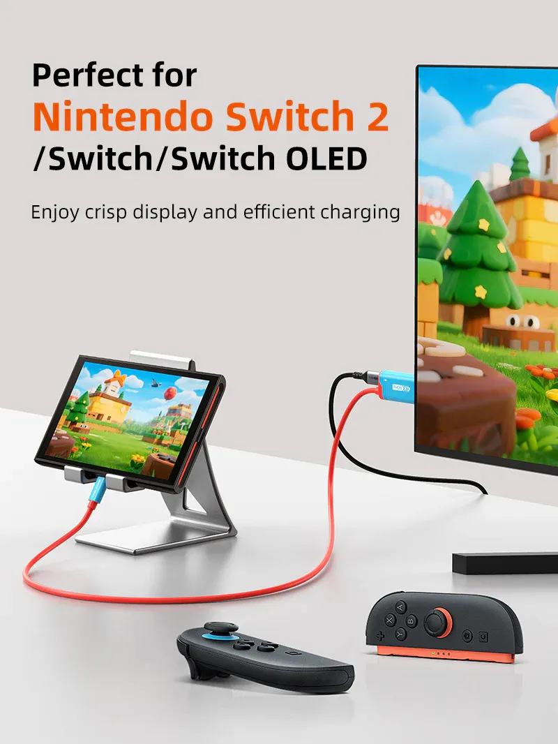 Καλώδιο της Cabletime για τη σύνδεση μιας οθόνης HDMI με μια συσκευή μέσω θύρας USB-C. Διαθέτει θύρα τροφοδοσίας USB-C που υποστηρίζει φόρτιση με απόδοση έως 100W. Είναι ιδανικό για gaming κονσόλες όπως το Nintendo Switch 1/2.