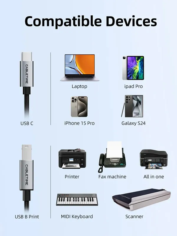 CABLETIME καλώδιο USB-C σε USB Type B CT-CMBM1, 480Mbps, 1m, μαύρο