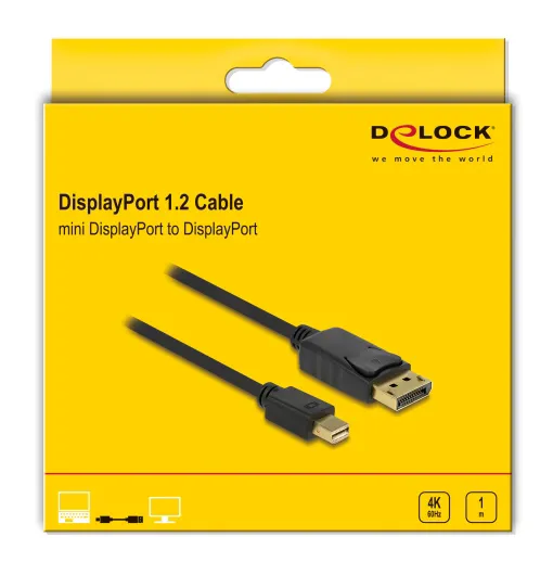 Αυτό το καλώδιο της Delock επιτρέπει τη σύνδεση συσκευών με mini DisplayPort διεπαφή σε συσκευές με DisplayPort διεπαφή όπως για παράδειγμα οθόνες, τηλεοράσεις, PC ή laptop.