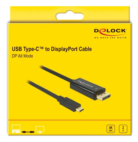 DELOCK καλώδιο USB-C σε DisplayPort 85256, DP Alt Mode, 4K, 2m, μαύρο