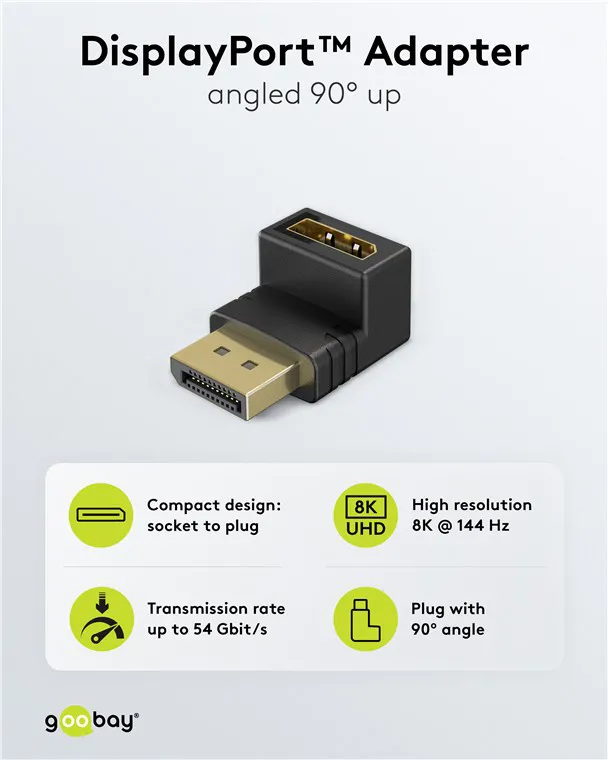 GOOBAY αντάπτορας DisplayPort 77129, 8K/144Hz, γωνιακός, μαύρος
