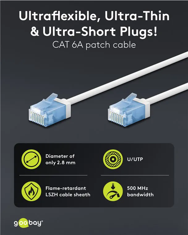 GOOBAY καλώδιο δικτύου 74285, CAT 6A U/UTP, slim, copper, 500MHz, 0.5m, λευκό