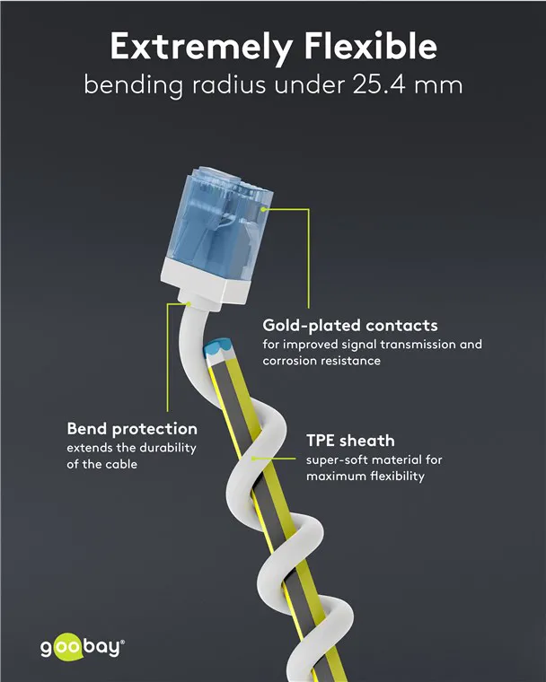 Τα καλώδια τις Goobay κατασκευάζονται με τις καλύτερες τεχνικές προδιαγραφές και τα καλύτερα υλικά κατασκευής για μεγάλη αντοχή, προσφέροντας αξιοπιστία και υψηλής ποιότητας απόδοση ώστε να εξασφαλίζουν την απροβλημάτιστη χρήση τους.