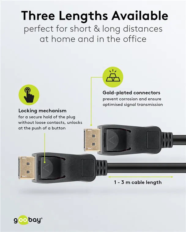 Τα καλώδια της Goobay κατασκευάζονται από ποιοτικά υλικά, με τις υψηλότερες τεχνικές προδιαγραφές, προσφέροντας αξιόπιστη λειτουργία υψηλής απόδοσης, με αντοχή στον χρόνο.