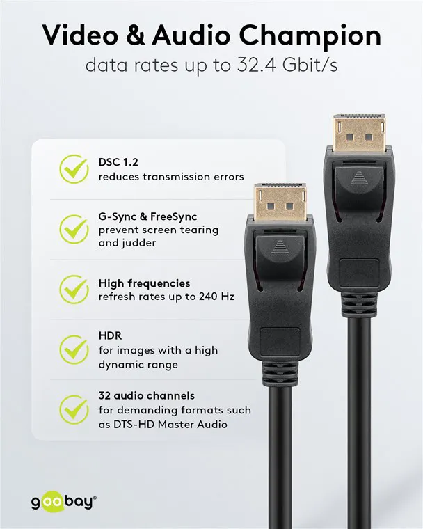 GOOBAY καλώδιο DisplayPort 74778, VESA Certified, 8K/60Hz, 32.4 Gbps, 2m, μαύρο