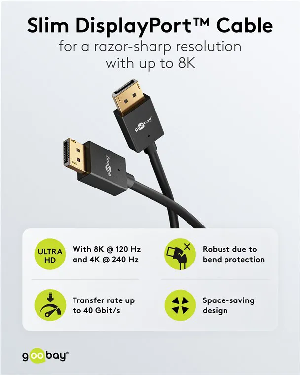 GOOBAY καλώδιο DisplayPort 77442, 8K/120Hz, 40 Gbps, 1m, μαύρο