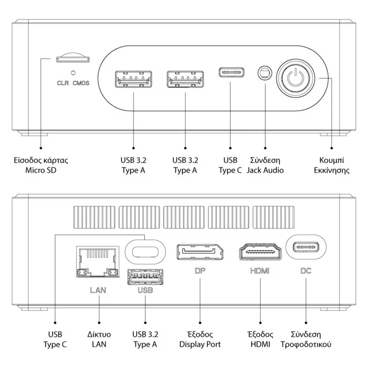 Το Mini PC HUSHIDA MINI PC-12450 είναι μια εξαιρετική επιλογή για προσωπική ή επαγγελματική χρήση γραφείου, ειδικά σε περιβάλλοντα με περιορισμένο χώρο. Πρόκειται για ένα ισχυρό και συμπαγές σύστημα. Ας δούμε αναλυτικά τα χαρακτηριστικά του: Χαρακτηριστικά: Επεξεργαστής: Intel Core i5 12450H, ιδανικός για απαιτητικές εργασίες. Μνήμη RAM: 16GB DDR4, επαρκής για multitasking και απαιτητικές εφαρμογές. Αποθηκευτικός Χώρος: M.2. SATA SSD 512GB, προσφέρει γρήγορη απόκριση και αρκετό χώρο για αποθήκευση δεδομένων. Λειτουργικό Σύστημα: Windows 11 Pro GR, έτοιμο για επαγγελματική χρήση. Συνδεσιμότητα: Μπροστινές Θύρες: oPower oAudio x1 oType-C x1 oUSB 3.2 x2 oCLR_CMOS x1 Πίσω Θύρες: oHDMI output x1 oDisplayPort (DP) x1 oType-C x1 oUSB 3.2 x1 oLAN RJ45 x1 oDC-Type C Power inx1 Επιπλέον Χαρακτηριστικά: Δικτύωση: 1GB LAN + Wi-Fi 6 Module, για γρήγορη και αξιόπιστη σύνδεση στο διαδίκτυο. Μέγεθος: 127x117x40 mm, πολύ μικρό και εύκολο στην τοποθέτηση. Χρώμα: Μαύρο VESA Metal panel : Περιλαμβάνεται, για εύκολη τοποθέτηση πίσω από οθόνες ή σε τοίχο. Τροφοδοτικό: 65W Ευρωπαϊκού τύπου, περιλαμβάνεται στη συσκευασία. Αυτό το Mini PC είναι ιδανικό για όσους χρειάζονται ένα ισχυρό και συμπαγές σύστημα για επαγγελματική χρήση