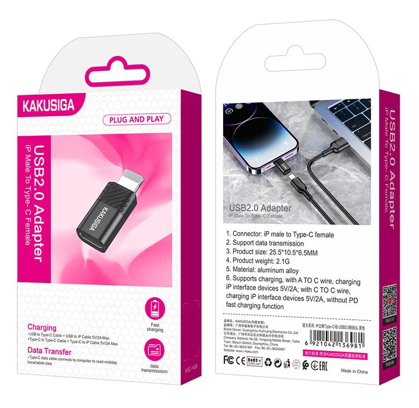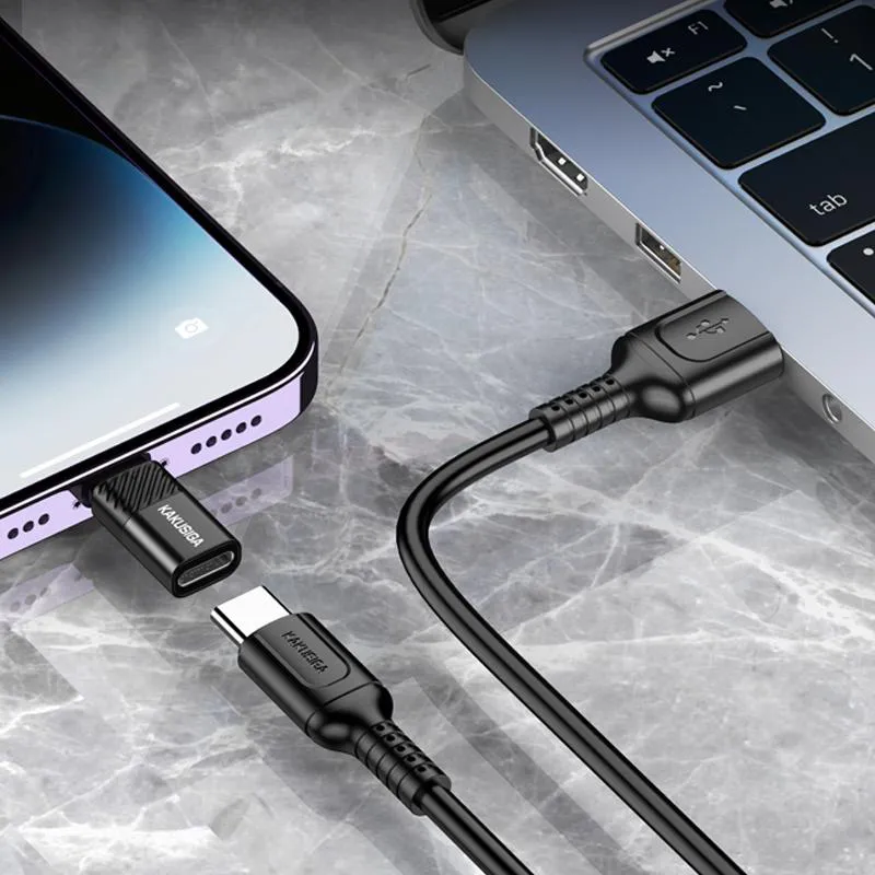 Αντάπτορας Lightning σε USB-C της KAKUSIGA, ιδανικός για τη μετατροπή μιας θηλυκής θύρας Lightning σε USB-C.