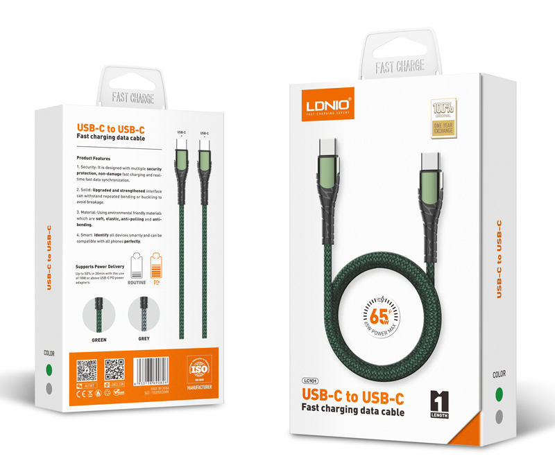Καλώδιο φόρτισης και μεταφοράς δεδομένων USB-C σε USB-C της LDNIO.