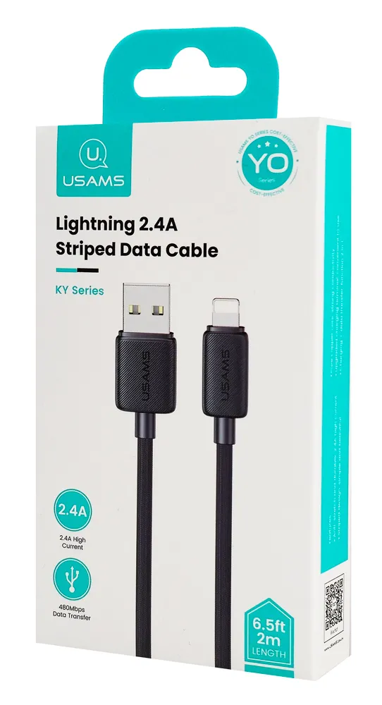 Καλώδιο φόρτισης και μεταφοράς δεδομένων Lightning σε USB της Usams. Υποστηρίζει φόρτιση με απόδοση έως 2.4A και μεταφορά δεδομένων με ταχύτητα έως 480Mbps.